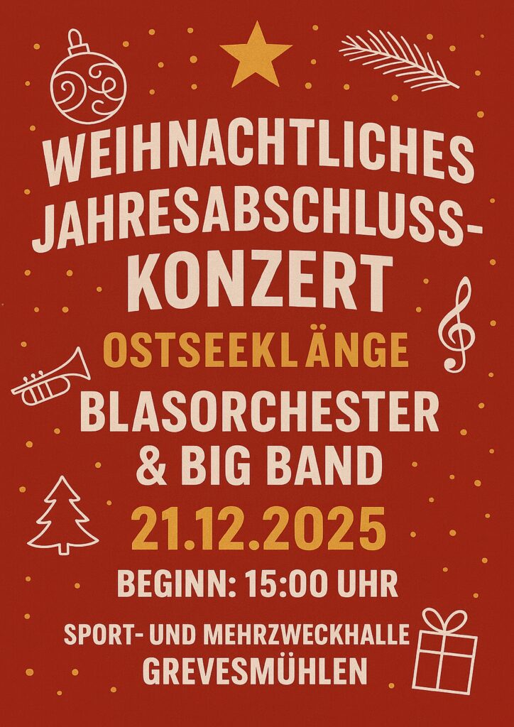 Wir laden herzlich zu unserem traditionellen Jahresabschlusskonzert ein. Euch erwartet ein abwechslungsreiches Programm voller festlicher Melodien, bewegender Arrangements und echter Gänsehautmomente. ✨